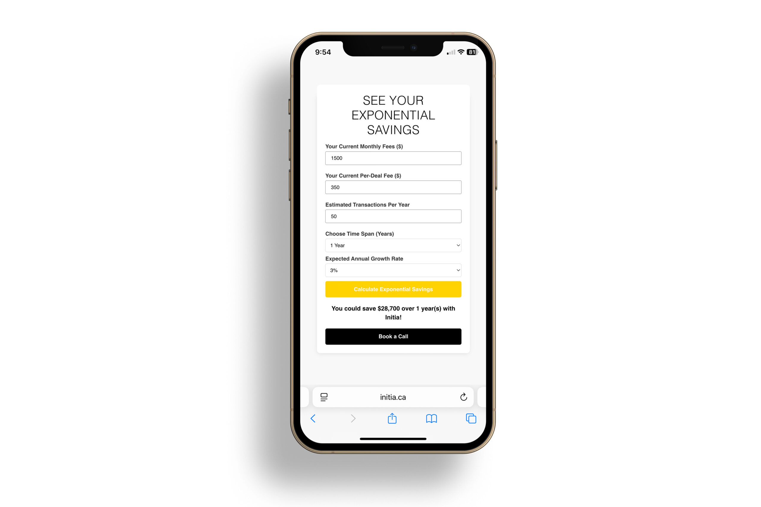 Our goal is simple: to show you how much more you could keep and how that extra income can fuel your business, your goals, and your life. With the Exponential Savings Calculator, you can quickly compare your current brokerage to INITIA’s agent-first model and see the earnings you’ve been missing.